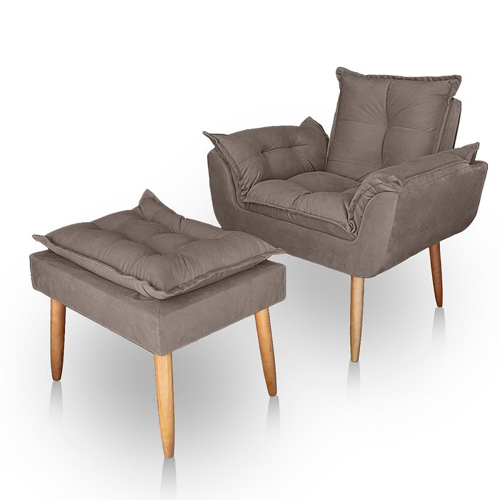 Poltrona Opala para Sala com Puff Reforçada Suede Capuccino Capuccino