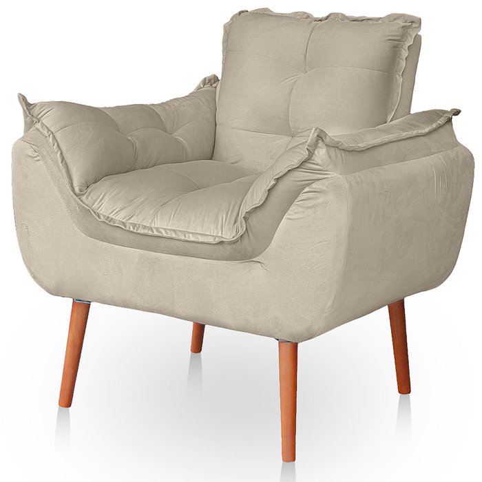 Poltrona Opala para Sala Confortável Resistente Veludo Bege Bege