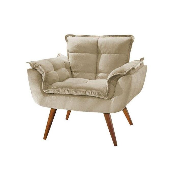 Poltrona Opala - Suede Bege, 1 lugar, Base Palito Imbuia