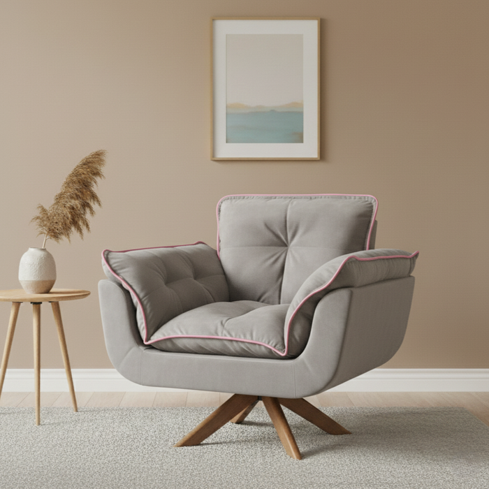 Se você busca uma poltrona que una conforto absoluto, sofisticação e funcionalidade, a Poltrona Opalla com Debrum e Base Giratória é a escolha perfeita para transformar qualquer ambiente. Seu design elegante com acabamento em debrum traz um charme especial, destacando suas curvas com muito bom gosto.