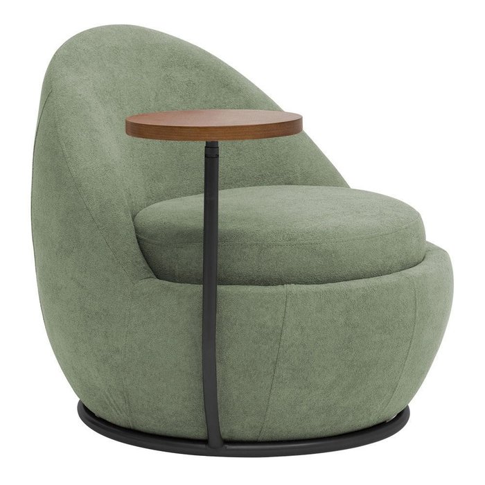 Poltrona Orgânica Kaira com Mesa Lateral Direita Base Fixa Preto Bouclé Verde Claro - Nexta Casa Verde Claro