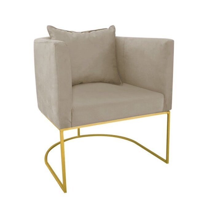 Poltrona Paola Suede Marrom Rato Base Metálica Dourado - D'Rossi