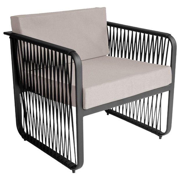 Poltrona Para área Externa Santiago Alumínio E Corda Náutica Preto/branco