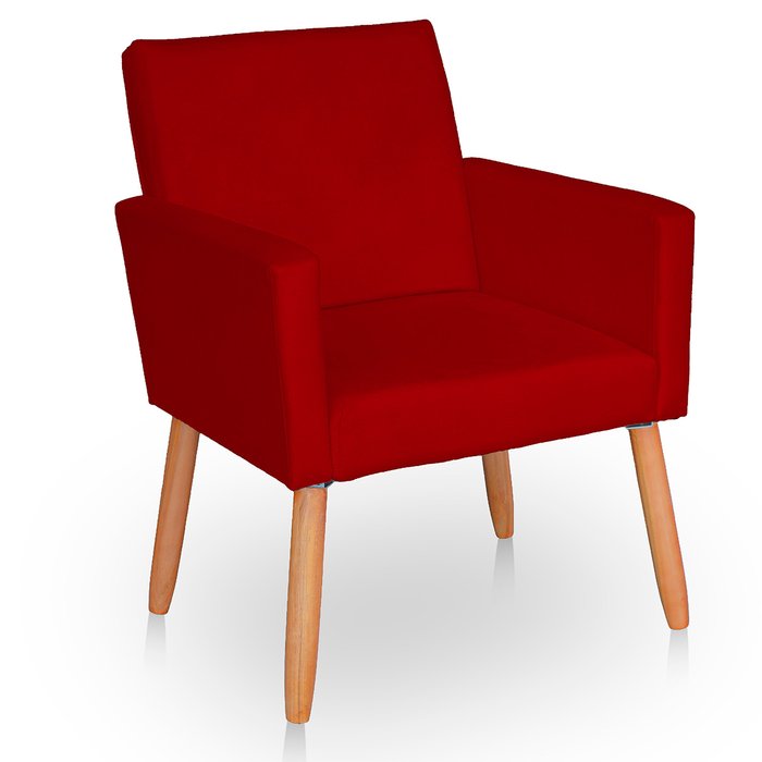 Poltrona para Sala Cadeira Reforçada Confortável Suede Vermelho