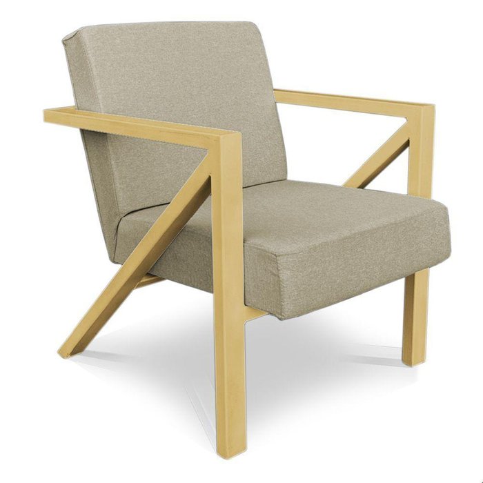 Poltrona para Sala de Estar Angel Linho Base Metálica Dourada - Pallazio Cor Bege