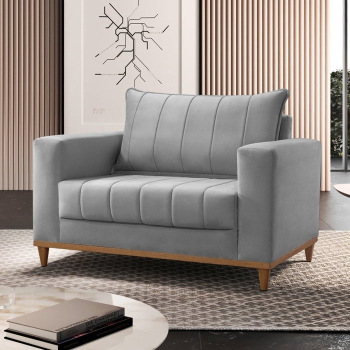 Poltrona para Sala de Estar Noah Movenzo Móveis Prata