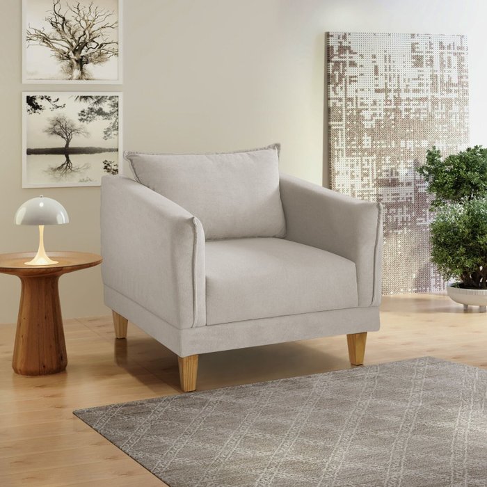 Poltrona para Sala de Estar Pés em Madeira Melina Bege Claro