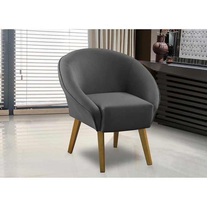 Poltrona Para Sala Decorativa Milena Veludo Cinza Adonai Estofados
