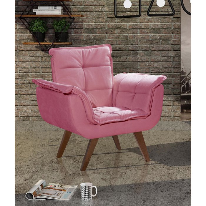 Poltrona Pé Palito Decoração Sala Quarto Recepção Bella Opala Rosa