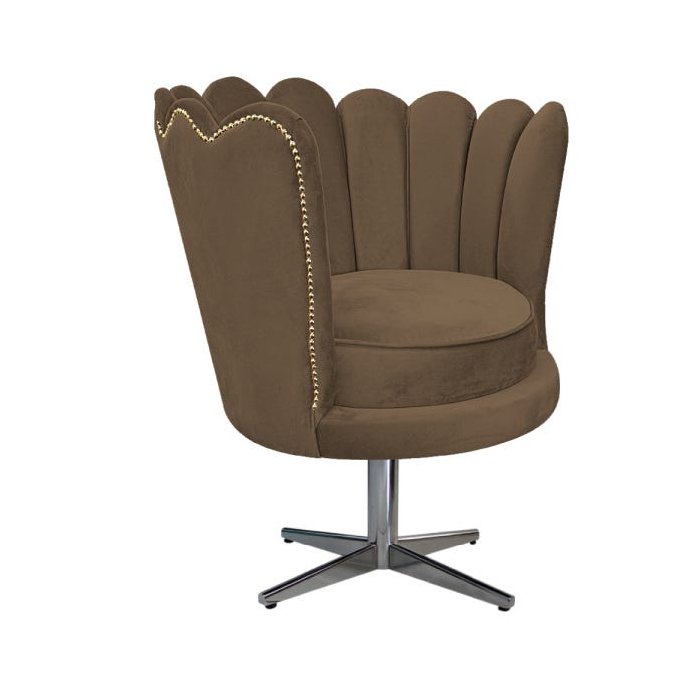 Poltrona Pétala Base Giratória de Metal Suede Marrom - Doce Sonho Móveis