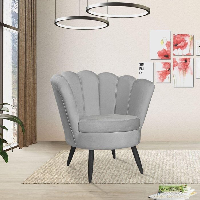 Poltrona Pétala Casa Luxo Decoração Sala Prata Sala Pé Preto