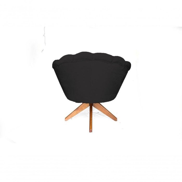 Poltrona Pétala Girassol Base Giratória De Madeira Sued Preta Ppa Decor