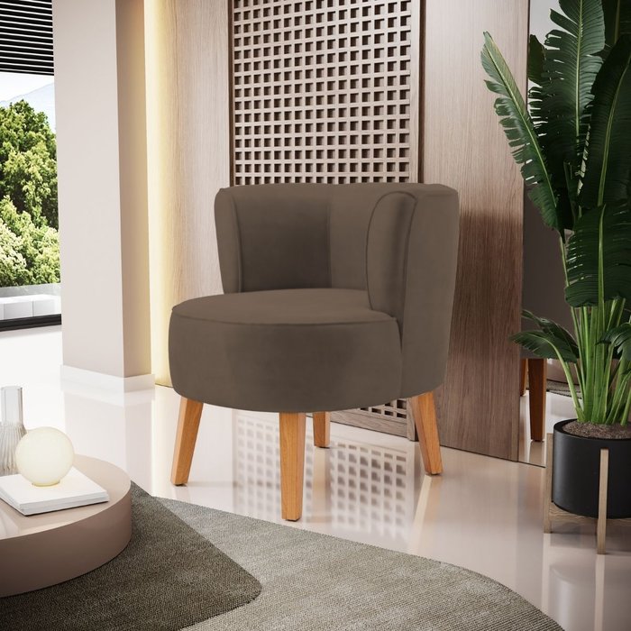 Poltrona pra Consultório Sala de Espera Pés Retrô Tecido Veludo Estrutura Resistente Marrom