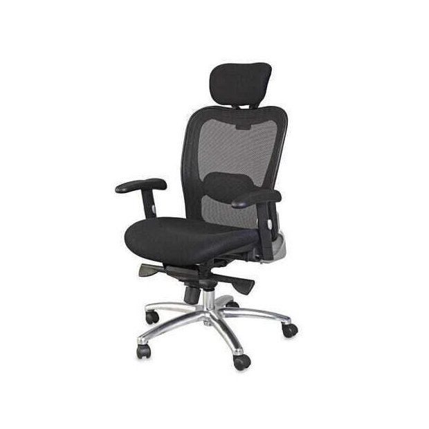 <b>Especificações:</b>Peso suportado: 120 Kg Elevador: Pistão a gás, giratóriaEnchimento: Espuma injetadaAjuste do encosto: Regulagem na lombar, sistema excêntrico, encosto de cabeça com regulagemMateriais: Encosto em tela, base ade alumínio, braços em P.U, rodízios em nylonBraços reguláveis