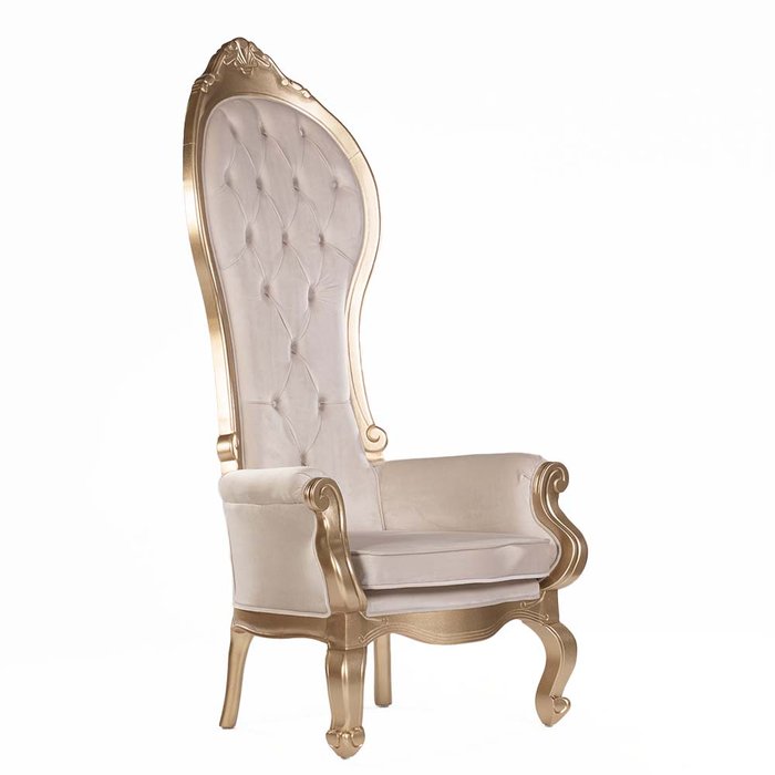 Poltrona Princess Madeira Estofada Dourado Fosco e Tecido Veludo Areia