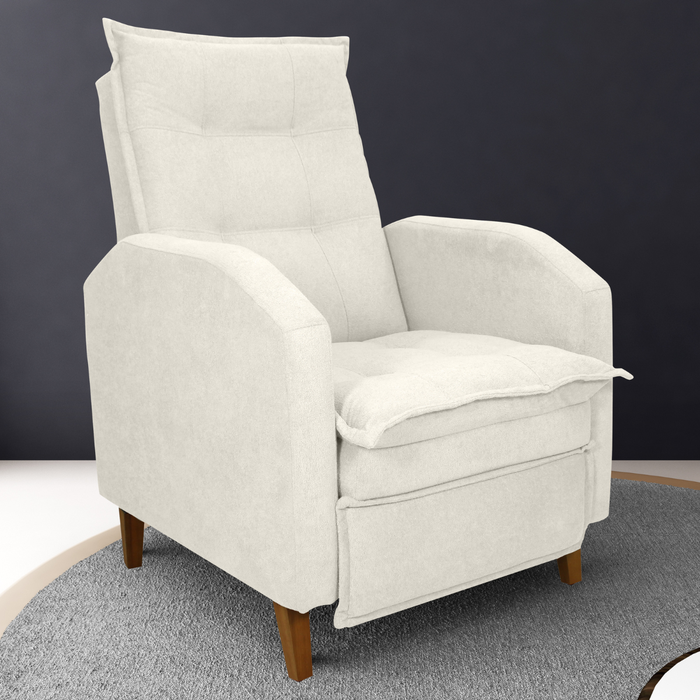 Essa Poltrona Reclinada é o ápice do conforto e do estilo. Com um design unico, ela combina elegância e funcionalidade, tornando-se o complemento perfeito para qualquer ambiente. Material do tecido é Boucle .Espuma D23 Assento e braça, D20 Encosto. Suporta 110Kg por assento. Madeira Eucalipto de reflorestamento. Dimensão da Poltrona Sentado: Altura: 105 cm Largura: 72 cm Comprimento: 87 cm Dimensão da Poltrona Reclinada: Altura: 95 cm Largura: 72 cm Comprimento: 140 cm Informações da Poltrona: Cor: Bege Pés: Sim (4) Madeira Cinta Elástica Espuma D23 Assento e braça, D20 Encosto. Suporta 110Kg por assento Madeira Eucalipto de reflorestamento Material do tecido: Boucle Itens Inclusos: 1 Poltrona Manual de Montagem Kit completo para montagem e manual de instruções Garantia: 3 meses contra defeito de fabricação Informações Adicionais: - Fotos meramente ilustrativas do produto no ambiente. - Os objetos que ambientam as fotos não acompanham o produto; - Verificar descrição e tamanho do produto antes da compra. - Avaliar a mercadoria no ato do recebimento e recuse em caso de divergência ou avarias. - Mantenha as informações de contato e endereço de entrega atualizados para entrarmos em contato caso necessário. - Limpar com flanela ou pano macio seco, não utilizar produtos abrasivos, desengordurantes, álcool ou solvente. Não expor o produto diretamente à luz solar e à umidade. * Sugerimos a contratação de um montador profissional para a montagem do produto. Não nos responsabilizamos por avarias causadas no ato da montagem. * Não nos responsabilizamos pela montagem e desmontagem do produto no ato da entrega e devolução, assim como os custos gerados nestas situações. * A transportadora entregará o produto no andar térreo do endereço de entrega. * Não nos responsabilizamos por subir escadas, corredores e elevadores ou transporte por guincho em apartamento
