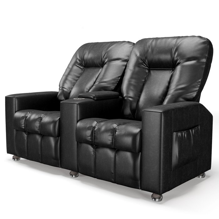 Poltrona Reclinável para Cinema 2 Lugares Praddo Fh9 Pu Preto Brilho - Mpozenato