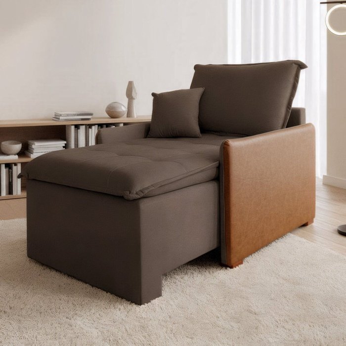 Nossa poltrona retrátil e reclinável é daquelas peças que conquistam à primeira vista, e não é à toa! Com design elegante, base em madeira maciça e braços revestidos em courino, ela une resistência, beleza e um toque sofisticado. Seu sistema retrátil e reclinável transforma qualquer cantinho no refúgio perfeito para relaxar, e quando o descanso pede um upgrade, ela é uma poltrona que vira cama, ideal para cochilos longos ou receber visitas com conforto.