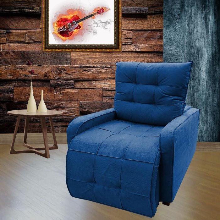 Poltrona Retratil e Reclinavel com Rodape Regulavel Sala Quarto Amamentação Azera Marinho