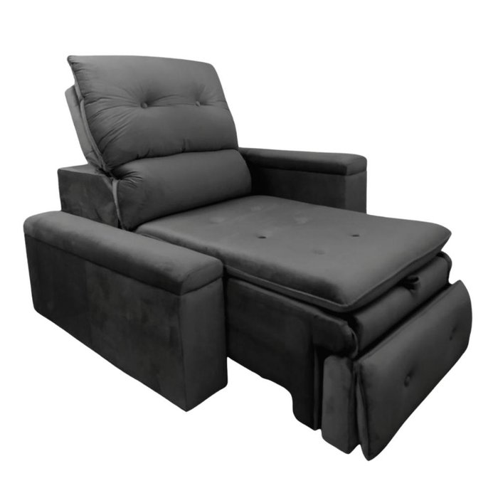Poltrona Retrátil Reclinável Sem Braço Lateral Direita Em Veludo Cinza Conforto - Larbelle