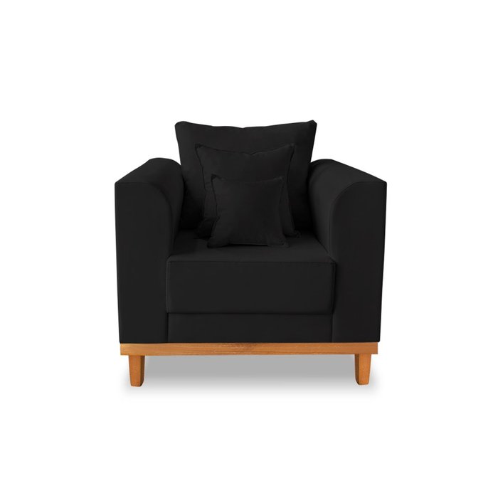 Poltrona Retro Viena Para Sala de Estar Suede Preto - Madeira Prima Deccor