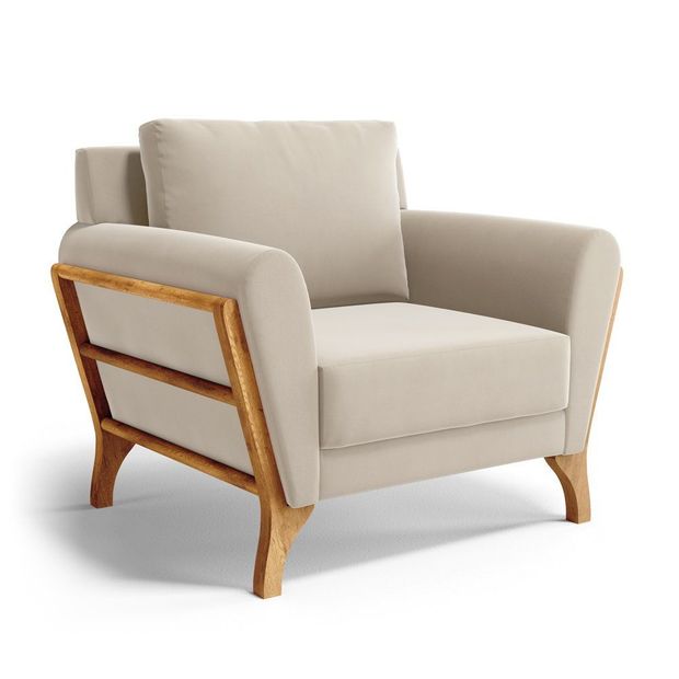 Poltrona Sabrina de Madeira Maciça com Almofada Veludo Bege 102 Veludo Bege 102