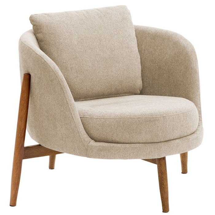 Poltrona Sala de Estar Austin Base Madeira Castanho Bouclé Bege - Nexta Casa