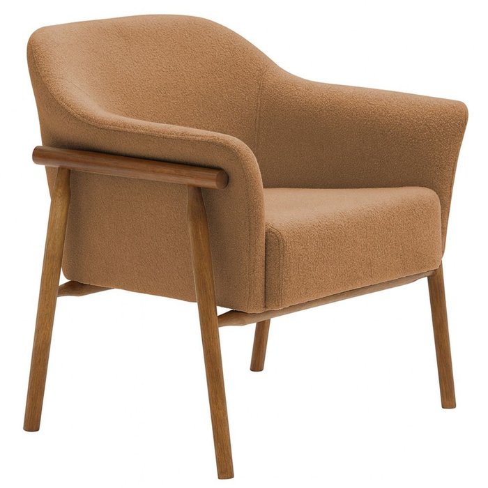 Poltrona Sala de Estar Luna Base Madeira Castanho Bouclé Terracota - Nexta Casa