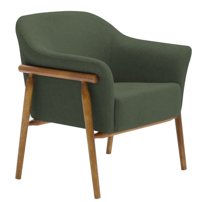 Poltrona Sala de Estar Luna Base Madeira Castanho Poliéster Verde Musgo - Nexta Casa