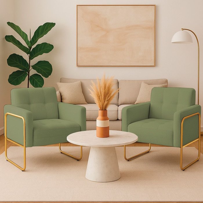 Poltrona Sala Industrial Alta Tubo Dourado Kit 2 Elisa Bouclê D03 - D'rossi Pistache