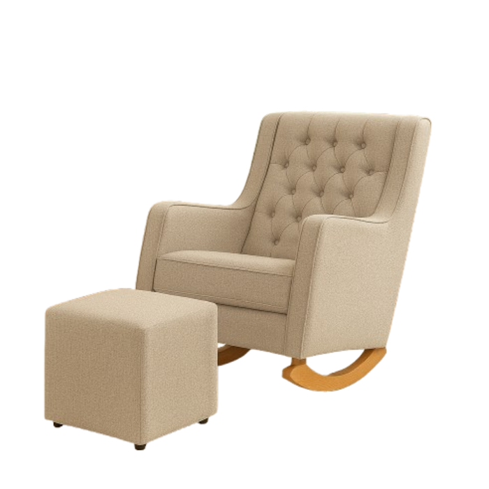 Poltrona Sofá Cadeira Amamentação Balanço C Puff Pés Madeira - Bege