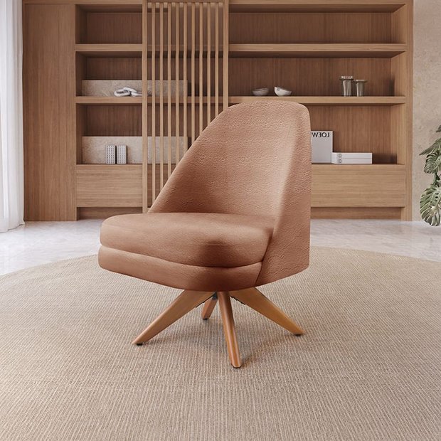 A poltrona Stella apresenta linhas curvas suaves, exalando um charme contemporâneo que se adapta a diversos estilos de decoração, desde o minimalista até o mais ousado. Fabricada com uma estrutura de MDF prensado, ela oferece a durabilidade necessária para suportar o uso diário, permitindo que você desfrute de seu conforto por longos períodos. Além disso, priorizamos o conforto, utilizando espuma de alta densidade D28 tanto no encosto quanto no assento. Sua base giratória adiciona um elemento prático e dinâmico, permitindo liberdade de movimento e facilitando a interação em espaços sociais. Feita com madeira seca e tratada, a base garante estabilidade e durabilidade. Garanta já a sua poltrona Stella e transforme seu ambiente!