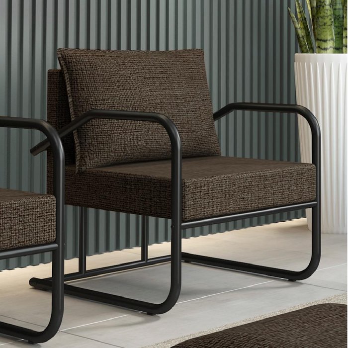 Poltrona Varanda Gourmet com Almofada Tecido Cinza Escuro Tubos Pretos Carraro
