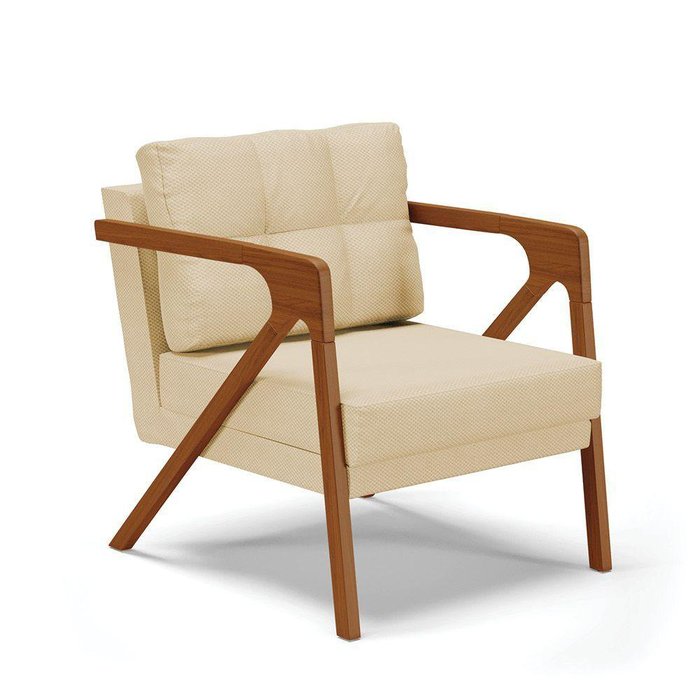 Poltrona Veludo Off White A129 Base De Madeira Castanho