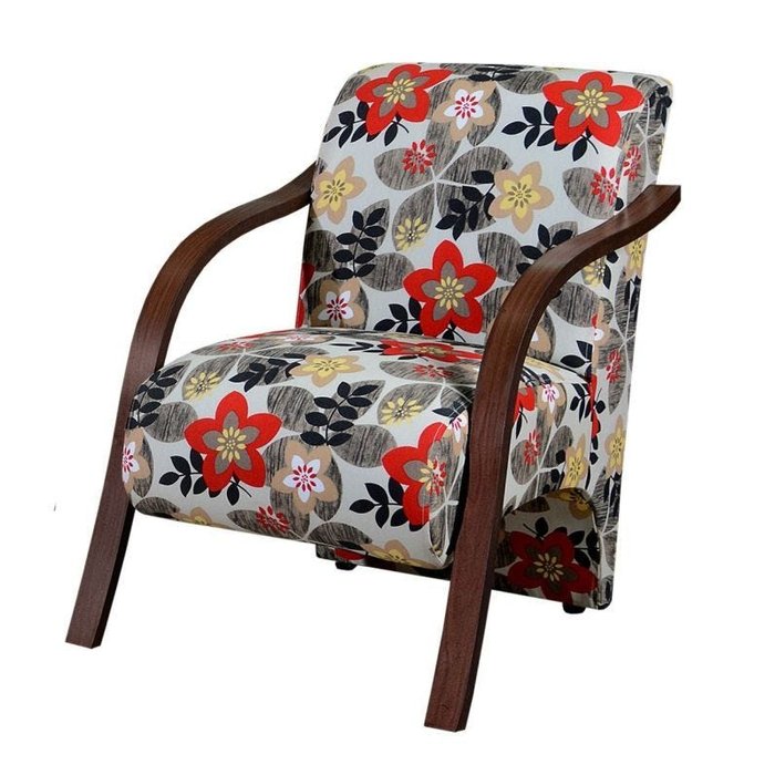 Poltrona Vênus estampada - Floral vermelho, 01 lugar, Braço Madeira Tabaco