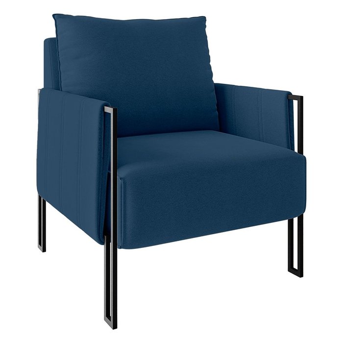 Poltrona Virgínia Veludo Azul Marinho Base de Ferro Preto - D’Rossi