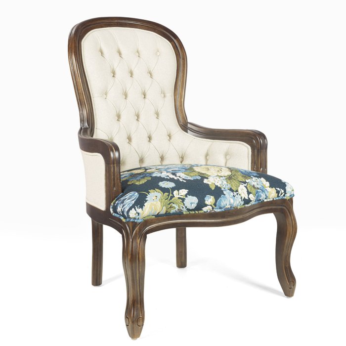 Poltrona Vitoriana Lisa Imbuia Envelhecido Assento Floral