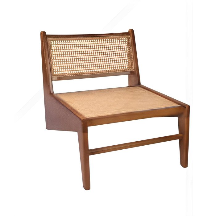 Poltrona em madeira amêndoa com encosto e assento em rattan natural.