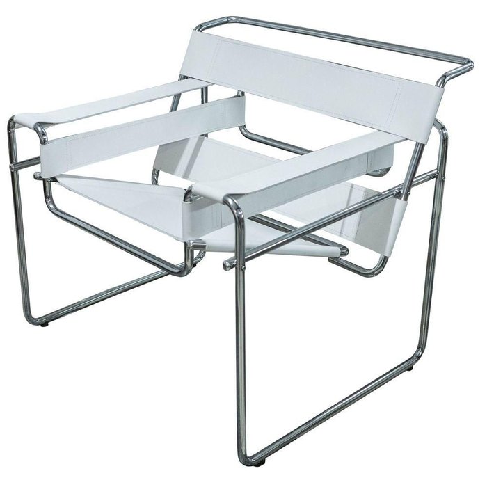 Poltrona Wassily Cromada Couro Prensado Branca -17486 Branco