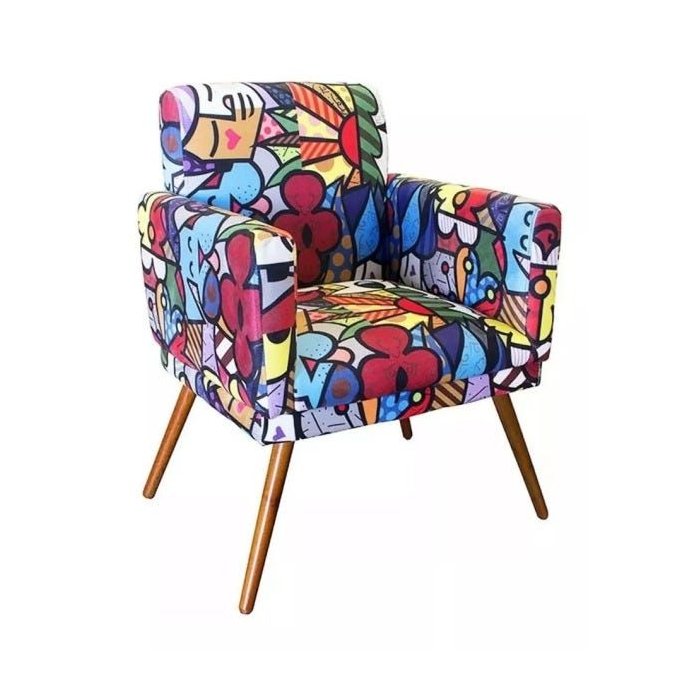 Poltronas Decorativas Estampadas Romero Brito Tecido Suede Sofá Cadeira Sala Jantar