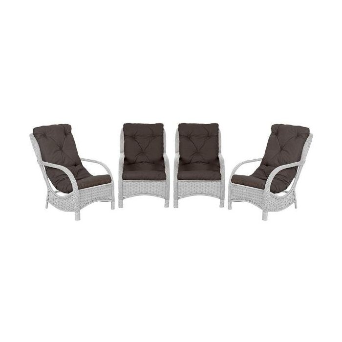 Decore a sua casa com os mais belos e confortáveis móveis, que dão requinte e elegância ao ambiente, são convidativos, lindos e práticos. Além de ecologicamente corretos, são produtos de qualidade, muito resistentes ao tempo. Produzida em estrutura de alumínio polido não enferruja, durabilidade cerca de 5 a 6 anos, Utilizando de maneira adequada tempo superior. material pode ser molhado e utilizado em áreas abertas. <br> <br> <br> <br> ITENS INCLUSOS<br> <br> <br> <br> - 4 Poltronas<br> <br> - 4 Almofadas Para Poltrona<br> <br> <br> <br> ESPECIFICAÇÃO DO PRODUTO<br> <br> <br> <br> MATERIAL DO ACABAMENTO: Fibra sintética com proteção UV.<br> <br> MATERIAL DA ESTRUTURA: Aluminium.<br> <br> SOLDA: Soldado MIG, de alta resistência.<br> <br> <br> <br> Ideal para ambientes externos, varandas, edículas, piscinas , área de lazer, salas de estar, sala de jogos, churrasqueiras, sala de filme, recepção, sala de espera entre outros.<br> <br> <br> <br> FABRICANTE: Click Móveis Artesanais<br> <br> GARANTIA: 12 meses Para Defeitos de Fabrica<br> <br> <br> <br> OBS:<br> <br> Fotos meramente ilustrativas. Tonalidades podem variar dependendo do monitor. Os objetos que ambientam as Fotos não acompanham o produto.<br> <br> Antes de comprar o seu produto verifique as medidas, o local onde pretende instalar e se necessário contratar o serviço de um profissional qualificado.