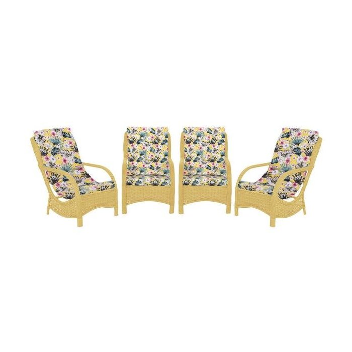 Poltronas Varanda Jardim Sacada Descanso Área Externa Alumínio Junco Vime 4Un Confort Amarelo A28 Amarelo