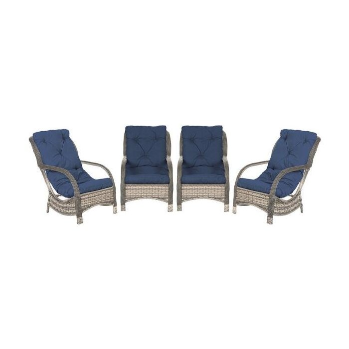 Decore a sua casa com os mais belos e confortáveis móveis, que dão requinte e elegância ao ambiente, são convidativos, lindos e práticos. Além de ecologicamente corretos, são produtos de qualidade, muito resistentes ao tempo. Produzida em estrutura de alumínio polido não enferruja, durabilidade cerca de 5 a 6 anos, Utilizando de maneira adequada tempo superior. material pode ser molhado e utilizado em áreas abertas. <br> <br> <br> <br> ITENS INCLUSOS<br> <br> <br> <br> - 4 Poltronas<br> <br> - 4 Almofadas Para Poltrona<br> <br> <br> <br> ESPECIFICAÇÃO DO PRODUTO<br> <br> <br> <br> MATERIAL DO ACABAMENTO: Fibra sintética com proteção UV.<br> <br> MATERIAL DA ESTRUTURA: Aluminium.<br> <br> SOLDA: Soldado MIG, de alta resistência.<br> <br> <br> <br> Ideal para ambientes externos, varandas, edículas, piscinas , área de lazer, salas de estar, sala de jogos, churrasqueiras, sala de filme, recepção, sala de espera entre outros.<br> <br> <br> <br> FABRICANTE: Click Móveis Artesanais<br> <br> GARANTIA: 12 meses Para Defeitos de Fabrica<br> <br> <br> <br> OBS:<br> <br> Fotos meramente ilustrativas. Tonalidades podem variar dependendo do monitor. Os objetos que ambientam as Fotos não acompanham o produto.<br> <br> Antes de comprar o seu produto verifique as medidas, o local onde pretende instalar e se necessário contratar o serviço de um profissional qualificado.