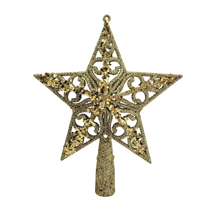 Ponteira De Árvore De Natal Estrela Dourada Flor 18x15x3cm