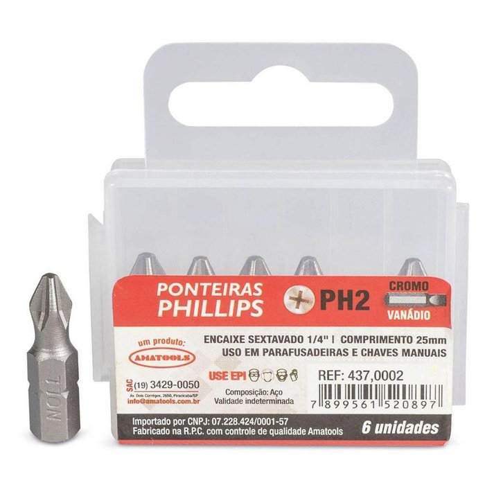 O QUE É A PONTEIRA PARA PARAFUSADEIRAA ponteira para parafusadeira é uma peça que se encaixa na extremidade da parafusadeira elétrica ou sem fio e é projetada para segurar e guiar pontas de parafusos durante o processo de fixação. Ela é essencial para fornecer suporte e estabilidade ao inserir ou remover parafusos em diferentes materiais, como madeira, metal ou plástico. A ponteira também pode variar em forma e tamanho, dependendo do tipo de parafuso a ser utilizado e da aplicação específica, garantindo uma fixação precisa e eficiente. COMO UTILIZAR A PONTEIRA PARA PARAFUSADEIRAPara utilizar a ponteira para parafusadeira, primeiro, selecione a ponta de parafuso adequada para a aplicação desejada. Em seguida, insira a ponta no encaixe da ponteira, certificando-se de que esteja firmemente fixada. Em seguida, coloque a ponteira na extremidade da parafusadeira, alinhando-a com o eixo da ferramenta. Depois, ajuste a velocidade e torque da parafusadeira conforme necessário para a tarefa em questão. Ao parafusar, mantenha a ponteira perpendicular à superfície e aplique pressão firme e constante enquanto opera a parafusadeira. Certifique-se de retirar a ponteira da parafusadeira quando não estiver em uso e armazene-a em um local seguro. DESCRIÇÃO DA PONTEIRA PARA PARAFUSADEIRA- Ponteiras Philips (PH) - Apresentação: embalagem com 6 Pontas. ESPECIFICAÇÕES DA PONTEIRA PARA PARAFUSADEIRA- Bitola(mm): PH1x25mm - Marca: NOLL; - Código:437.0001 Distribuidor Autorizado para todo o Brasil. O Grupo Piveta Ferramentas é uma empresa com mais de 30 anos no mercado e líder no segmento de Máquinas e Ferramentas para Usinagem, contamos com mais de 25 Mil produtos para melhor lhe atender. Temos como compromisso um atendimento e excelência na prestação de serviços.. Não perca tempo procurando, a ferramenta certa para você está aqui. É importante ressaltar também que nossa atuação não se limita ao setor de Usinagem Mecânica, nossa variedade de produtos nos permite atender a vários setores como Agronegócio, Embalagem Plástica, Retifica de Motores, Usinas de Açúcar e Álcool, Manutenção Industrial (Usinagem e Caldeiraria), Mineração, Área de Fertilizantes, Frigoríficos, Usinagem Médio para Grande Porte e Automação Industrial. Desta forma fortificando e ajudando no desenvolvimento econômico do nosso país.