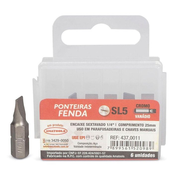 O QUE É A PONTEIRA PARA PARAFUSADEIRAA ponteira para parafusadeira é uma peça que se encaixa na extremidade da parafusadeira elétrica ou sem fio e é projetada para segurar e guiar pontas de parafusos durante o processo de fixação. Ela é essencial para fornecer suporte e estabilidade ao inserir ou remover parafusos em diferentes materiais, como madeira, metal ou plástico. A ponteira também pode variar em forma e tamanho, dependendo do tipo de parafuso a ser utilizado e da aplicação específica, garantindo uma fixação precisa e eficiente. COMO UTILIZAR A PONTEIRA PARA PARAFUSADEIRAPara utilizar a ponteira para parafusadeira, primeiro, selecione a ponta de parafuso adequada para a aplicação desejada. Em seguida, insira a ponta no encaixe da ponteira, certificando-se de que esteja firmemente fixada. Em seguida, coloque a ponteira na extremidade da parafusadeira, alinhando-a com o eixo da ferramenta. Depois, ajuste a velocidade e torque da parafusadeira conforme necessário para a tarefa em questão. Ao parafusar, mantenha a ponteira perpendicular à superfície e aplique pressão firme e constante enquanto opera a parafusadeira. Certifique-se de retirar a ponteira da parafusadeira quando não estiver em uso e armazene-a em um local seguro. DESCRIÇÃO DA PONTEIRA PARA PARAFUSADEIRA- Ponteiras Fenda (SL) - Apresentação: embalagem com 6 Pontas. ESPECIFICAÇÕES DA PONTEIRA PARA PARAFUSADEIRA- Bitola(mm): SL6x50mm - Marca: NOLL; - Código:437.0015 Distribuidor Autorizado para todo o Brasil. O Grupo Piveta Ferramentas é uma empresa com mais de 30 anos no mercado e líder no segmento de Máquinas e Ferramentas para Usinagem, contamos com mais de 25 Mil produtos para melhor lhe atender. Temos como compromisso um atendimento personalizado, entrega rápida e excelência na prestação de serviços. Não perca tempo procurando, a ferramenta certa para você está aqui. É importante ressaltar também que nossa atuação não se limita ao setor de Usinagem Mecânica, nossa variedade de produtos nos permite atender a vários setores como Agronegócio, Embalagem Plástica, Retifica de Motores, Usinas de Açúcar e Álcool, Manutenção Industrial (Usinagem e Caldeiraria), Mineração, Área de Fertilizantes, Frigoríficos, Usinagem Médio para Grande Porte e Automação Industrial. Desta forma fortificando e ajudando no desenvolvimento econômico do nosso país.