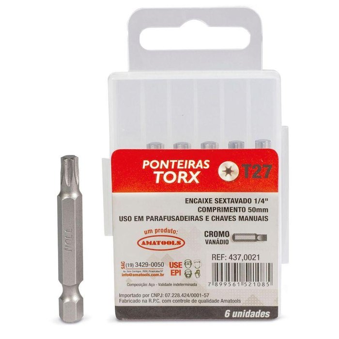 O QUE É A PONTEIRA PARA PARAFUSADEIRAA ponteira para parafusadeira é uma peça que se encaixa na extremidade da parafusadeira elétrica ou sem fio e é projetada para segurar e guiar pontas de parafusos durante o processo de fixação. Ela é essencial para fornecer suporte e estabilidade ao inserir ou remover parafusos em diferentes materiais, como madeira, metal ou plástico. A ponteira também pode variar em forma e tamanho, dependendo do tipo de parafuso a ser utilizado e da aplicação específica, garantindo uma fixação precisa e eficiente. COMO UTILIZAR A PONTEIRA PARA PARAFUSADEIRAPara utilizar a ponteira para parafusadeira, primeiro, selecione a ponta de parafuso adequada para a aplicação desejada. Em seguida, insira a ponta no encaixe da ponteira, certificando-se de que esteja firmemente fixada. Em seguida, coloque a ponteira na extremidade da parafusadeira, alinhando-a com o eixo da ferramenta. Depois, ajuste a velocidade e torque da parafusadeira conforme necessário para a tarefa em questão. Ao parafusar, mantenha a ponteira perpendicular à superfície e aplique pressão firme e constante enquanto opera a parafusadeira. Certifique-se de retirar a ponteira da parafusadeira quando não estiver em uso e armazene-a em um local seguro. DESCRIÇÃO DA PONTEIRA PARA PARAFUSADEIRA- Ponteiras Torx (T) - Apresentação: embalagem com 6 Pontas. ESPECIFICAÇÕES DA PONTEIRA PARA PARAFUSADEIRA- Bitola(mm): T20x25mm - Marca: NOLL; - Código:437.0016 Distribuidor Autorizado para todo o Brasil. O Grupo Piveta Ferramentas é uma empresa com mais de 30 anos no mercado e líder no segmento de Máquinas e Ferramentas para Usinagem, contamos com mais de 25 Mil produtos para melhor lhe atender. Temos como compromisso um atendimento e excelência na prestação de serviços.. Não perca tempo procurando, a ferramenta certa para você está aqui. É importante ressaltar também que nossa atuação não se limita ao setor de Usinagem Mecânica, nossa variedade de produtos nos permite atender a vários setores como Agronegócio, Embalagem Plástica, Retifica de Motores, Usinas de Açúcar e Álcool, Manutenção Industrial (Usinagem e Caldeiraria), Mineração, Área de Fertilizantes, Frigoríficos, Usinagem Médio para Grande Porte e Automação Industrial. Desta forma fortificando e ajudando no desenvolvimento econômico do nosso país.