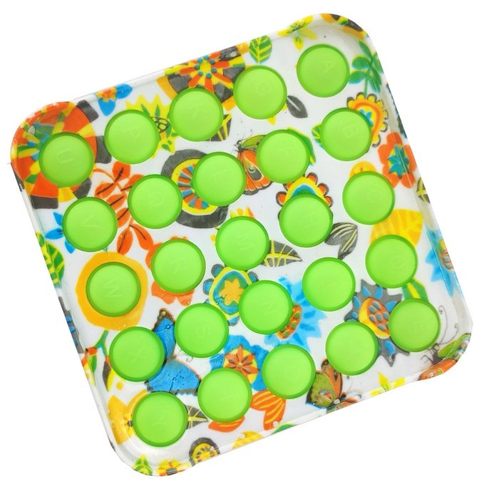 Brinquedo Anti Estresse para todas as idades, este é um produto sensorial. Este tipo de produto é uma ótima opção para aliviar estresse, ansiedade. Fácil transporte. Características: Material: Polipropileno e Silicone Cor: Colorido com bolhas verdes. Em suas bolhas possui as letras do alfabeto Fácil de usar Não tóxico Alivia o estresse Dimensões do produto: Altura: 12 cm Largura:12 cm Conteúdo da embalagem: 1 Pop It Fidget Colorido com bolhas verdes em formato Quadrado. 3 meses de garantia contra defeito de fabricação **50g Modelo: BSL3294 Verde