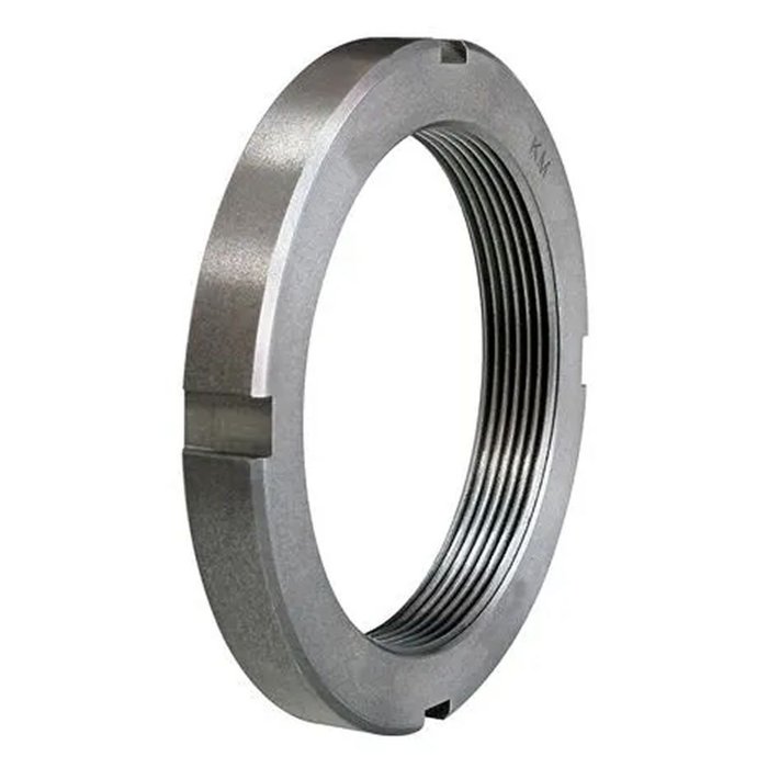 - As porcas de fixação KM com roscas métricas são usadas para fixar rolamentos em um eixo.