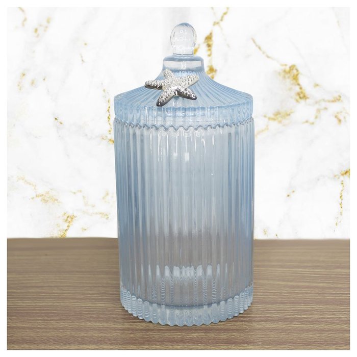 Porta Algodão E Cotonete Azul Vidro 22cm -
